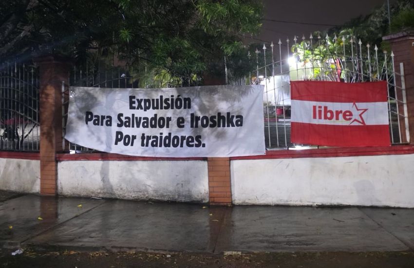 Colocan mantas exigiendo salida de Nasralla e Iroshka del Partido Liberal