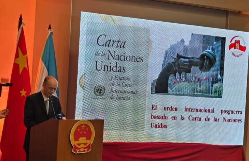 El diplomático reafirmó que China promueve la paz y el desarrollo mundial, destacando su compromiso con el multilateralismo, la cooperación internacional y el respeto al orden establecido en la Carta de las Naciones Unidas.