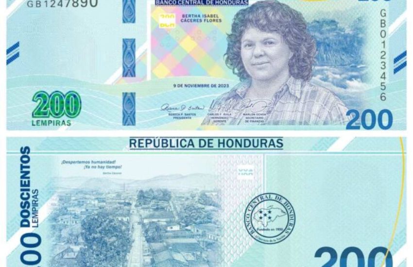 - El rostro de Bertha Cáceres, primera mujer hondureña en protagonizar un billete.
