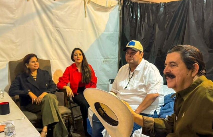 Tegucigalpa. El coordinador general del Partido Libertad y Refundación (Libre), Manuel “Mel” Zelaya, acompañado por la candidata presidencial Rixi Moncada y la diputada Hortensia Zelaya, visitaron este miércoles al alcalde del Distrito Central, Jorge Aldana, en el campamento instalado frente al Instituto Nacional de Formación Profesional (Infop).